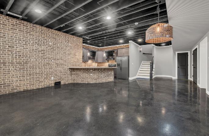t w o l a u n d r y r o o m s . T h e s p i r a l s t a i r c a s e l e a d s t o t h e f i n i s h e d b a s e m e n t w i t h a f u l l k i t c h e n ,
