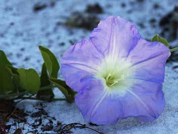 Florida Bonamia is a perennial flowering vine. Its showy blooms vary slightly in color from a bright blue in the morning to a pale lavender by the afternoon, at which time, the blooms close. They are solitary, five-lobed and funnel-shaped with white throats. Leaves are grayish-green and ovate with pointed tips, entire margins and tiny hairs.