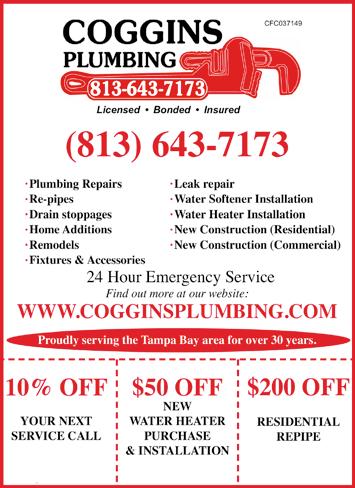 Coggins Plumbing licensed • bonded • Insured. www.cogginsplumbing.com 813-643-7173