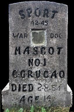 When the Erin branch of the Royal Canadian Legion was founded, Oscar became its first president, and Sport continued his mascot duties with the local company of the Lorne Scots Army Reserve. When he died, he was buried in the Erin fairgrounds – with full military honours provided by the Lorne Scots. Sport’s modest memorial, weathered by time, now sits in front of the Erin Legion. His service as a war dog is also honoured on the website of Veterans Affairs Canada. And when Oscar died in 1963, his funeral was also conducted according to military tradition.