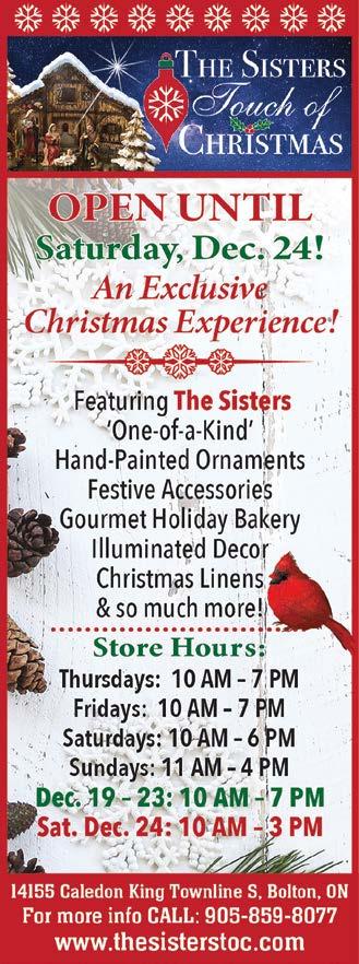 DEC 6 : SNOWY NIGHT STORY TIME Wear your warmest pjs for winterythemed stories, songs and activities. 7pm. Free. Caledon Library, 15825 McLaughlin Rd, Caledon. 905-8571400 x228; caledon.library.on.ca