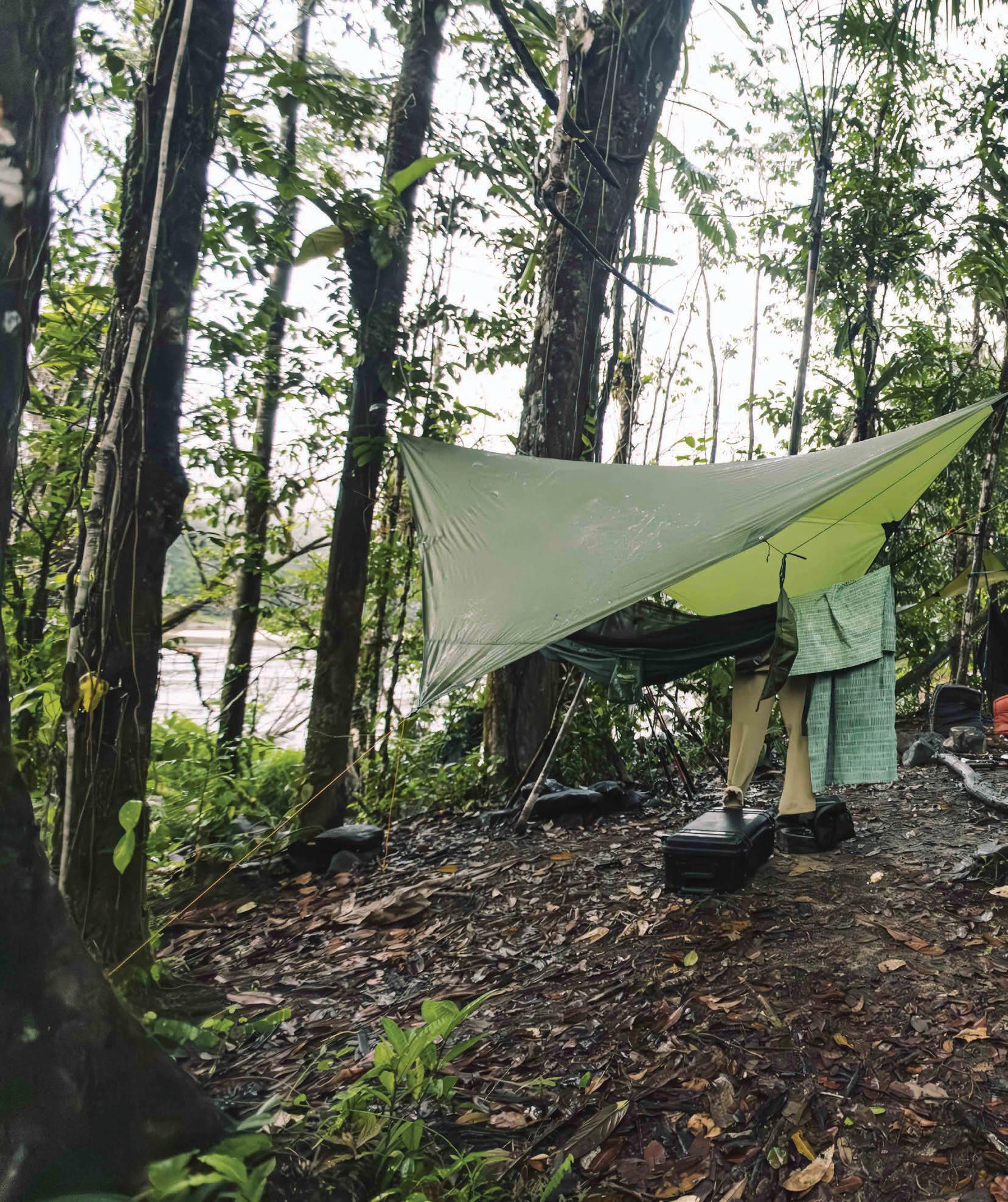 On the paddle back, we take the opportunity to gather the driest wood we can find for the fire. The journey is slow, retracing our route through the twisting tributary, then hauling ourselves a few hundred meters upriver to camp.