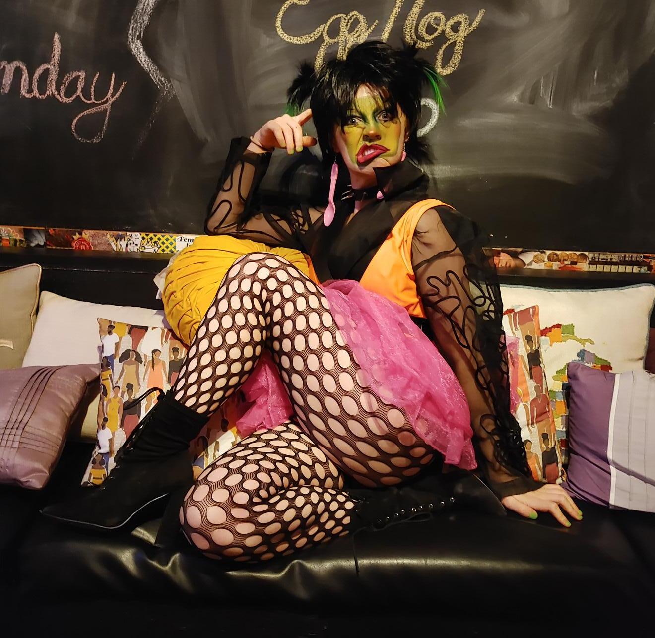 To the left of Snot Rokette at our table, Archie Falandys (he/him), 23, is a multi-instrumentalist and vocalist for local Columbus punk bands Kiss Pink and The Catchwords. To him, his sense of identity is as dual as being both instrumentalist and vocalist. “Who you are and how you represent yourself will often be different things. Like the inner self and outer self. Learning to make peace between those two things is really your identity.”
