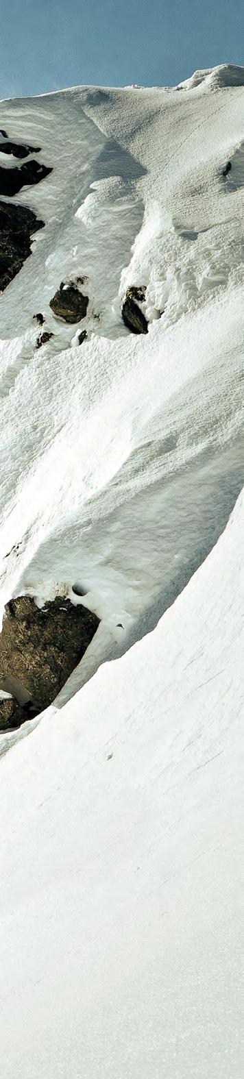 highest peak at just short of 6,000m. “Putting our skis on just under 6,000m and skiing off the summit was pretty special. The initial turns were over a steep no-fall zone,” said Žalohar. Despite being dubbed the Switzerland of Pakistan and being home to the