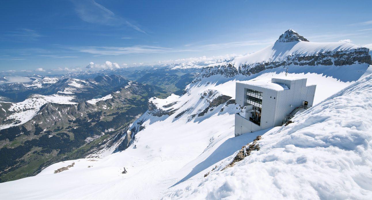 level, the restaurant offers breathtaking views over the Tsanfleuron Glacier and Alpine peaks, including Eiger, Jungfrau and Mont Blanc. A highlight of the redesign is the 250-square-metre rooftop terrace, offering panoramic views of the Matterhorn and 24 other peaks towering over 4,000m.