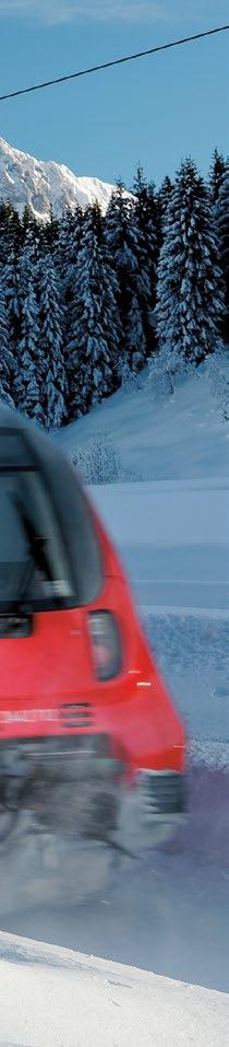 Independent skiers can book train-only tickets through RailEurope (raileurope. com), accessing the Snow Train and wider European rail networks. Routes from London, Brussels, Amsterdam and Paris to the Alps are now on sale, with return fares starting at around £224. RailEurope offers multilingual support and streamlined booking for those planning bespoke itineraries or avoiding flights. It’s a scenic, reliable and sustainable way to travel.