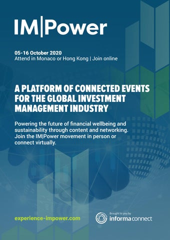A PLATFORM OF CONNECTED EVENTS FOR THE GLOBAL INVESTMENT MANAGEMENT INDUSTRY Powering the future of financial wellbeing and sustainability through content and networking. Join the IM|Power movement in person or connect virtually.