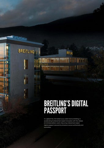 BREITLING’S DIGITAL PASSPORT In a global first, the Swiss luxury watch brand, Breitling, is accelerating its blockchain-based innovation with the release of a limited-edition watch, featuring a blockchain-based digital passport powered by Arianee to prove authenticity and ownership.