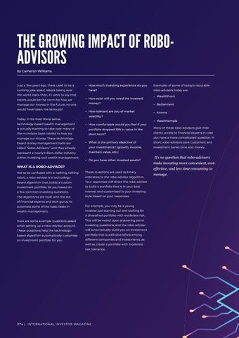 THE GROWING IMPACT OF ROBOADVISORS by Cameron Williams
