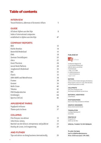 Table of contents INTERVIEW Tseard Hoekstra, alderman of Economic Affairs GUIDE All about Alphen aan den Rijn Index of international companies established in Alphen aan den Rijn