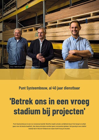 'Betrek ons in een vroeg stadium bij projecten' Punt Systeembouw is een no-nonsense bedrijf. Belofte maakt schuld, eerlijkheid duurt het langst en altijd gaan voor de beste kwaliteit. Aan deze principes worden geen concessies gedaan. Het gevolg is een stabiel bedrijf dat in Noord-Holland een naam heeft hoog te houden.