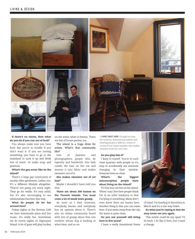 → home sweet home Though he loves his isolation, Rothermund admits that meeting people is difficult, unless of course it's an island resident who makes sweaters from her cat's hair.