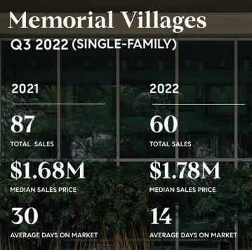 Housing in Houston has experienced historic appreciation since the pandemic struck in early 2020. The average price of a single-fami ly home rose 11.6 percent in September to $414,776 – well below the record high of $438,384 reached in May 2022. The median price jumped 14.7 percent to $343,950, which is also below the highest median of all time, $354,100, reached in June 2022. The average price for a single-family home in Houston first broke the $400,000 mark in March of this year. The median price has held above $300,000 since May 2021.
