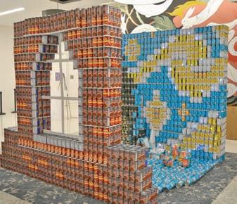 CANstruction is an international nonprofit organization aimed at providing canned goods to local food banks by hosting competitions where teams consisting of architects, engineers, contractors and student mentees design and build large structures made of cans. After the competitions, the food is donated to local food banks.