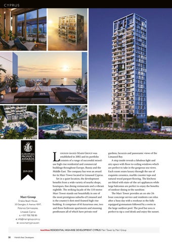 t: +357 700 700 85 e: info@marr-group.com.cy w: www.marrcyprus.com Award Winner RESIDENTIAL HIGH-RISE DEVELOPMENT CYPRUS Marr Tower by Marr Group