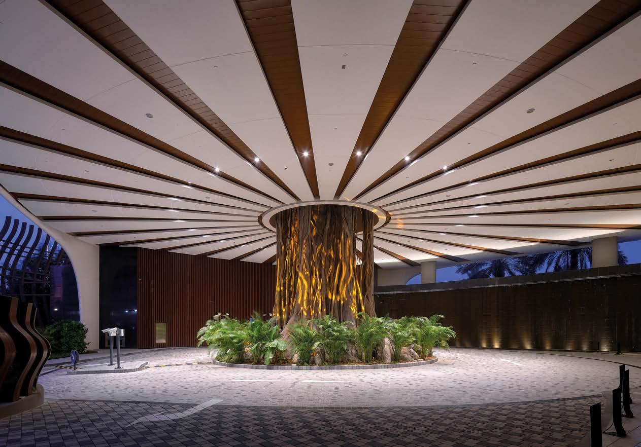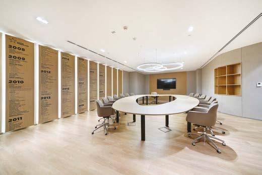 spaces. The design balanced cultural elements with advanced functionality to create a cohesive and productive workspace.