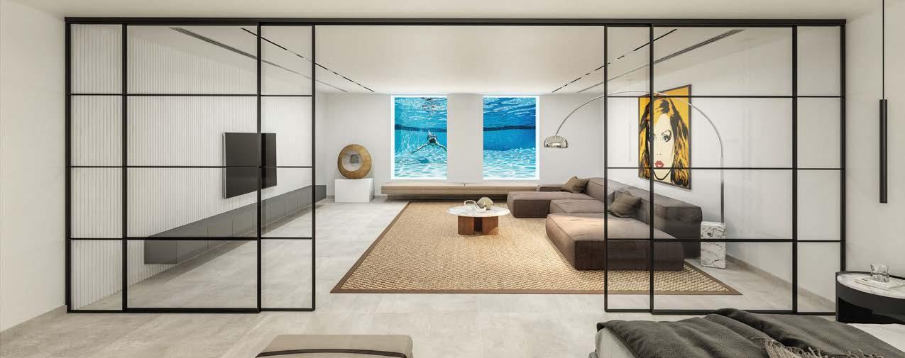 The apartment offers sweeping views of the Arabian Gulf, the Palm Jumeirah, and, on a clear day, the mountains of Ras Al Khaimah to the north. Features include a private internal lift and 12 reserved parking spaces. The shell-and-core layout allows buyers to customise the space entirely to their preferences.