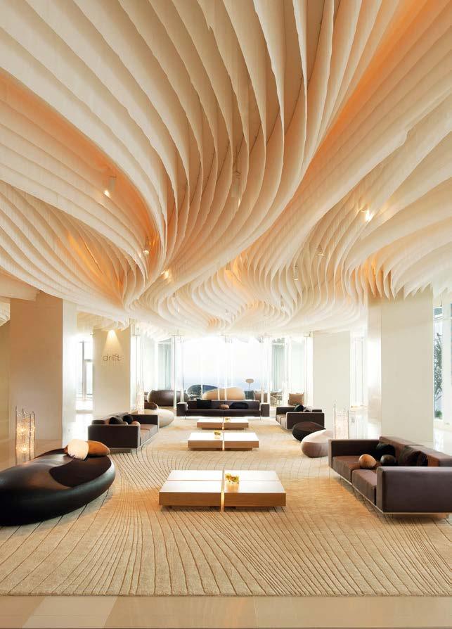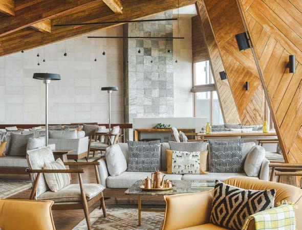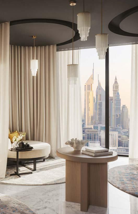 frame panoramic views of Dubai’s iconic skyline. The arrival area is equally striking, with a sculptural roof that mimics the undulating shapes of desert dunes. This thoughtful detail sets the tone for an environment that balances sophistication with a sense of place.