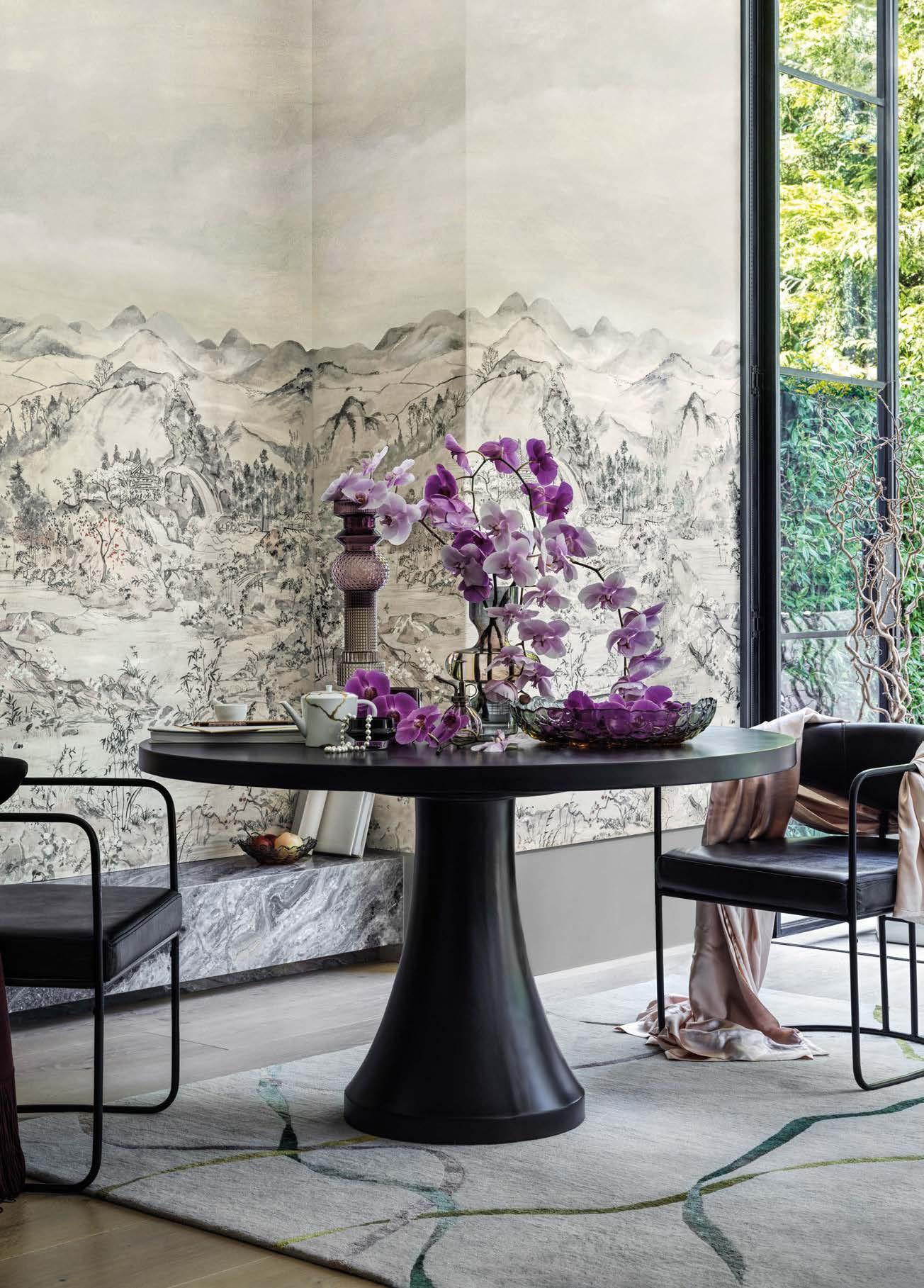 Associated Suppliers: Piet Boon Lounge Chair (Cover) | Baxter Easy Chair | Poltrona Frau Wingback Chair | Ceccotti Collezioni Large Flower Sofa | Linley Games Table Morelato Sideboard | Y Interiors Drinks Cabinet | Ferreira De Sá Round Area Rug | Besselink & Jones Floor Lamp | Porta Romana Table Lamp | Sofa & Chair Side Chair (Games Table)