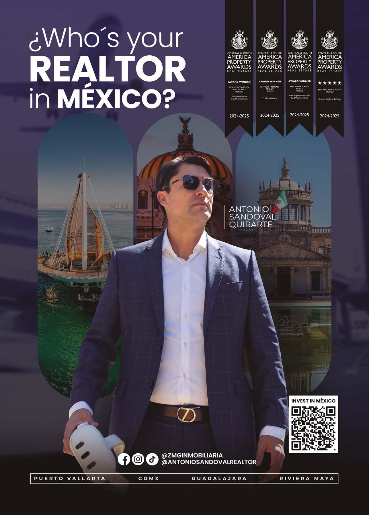 A pivotal figure in Guadalajara’s real estate sector is Antonio Sandoval Quirarte. With over 13 years of experience in the industry, his contributions have been widely recognised. His company, ZMG Inmobiliaria, has been awarded the title of Real Estate Agency of the Year by the Mexican Association of Real Estate Professionals (AMPI). Antonio himself has been honoured with four International Property Awards, including “Best Real Estate Agent in Mexico.” These accolades highlight his commitment to innovation, professionalism, and excellence in real estate.
