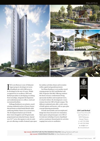Highly Commended ARCHITECTURE MULTIPLE RESIDENCE MALAYSIA DeBunga Residensi by IJM Land Highly Commended CONDOMINIUM MALAYSIA Seri Riana Residence by IJM Land International Property Awards