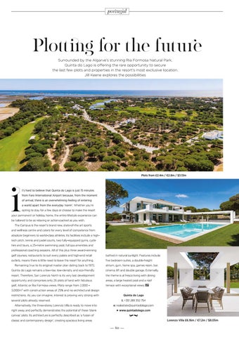 Plotting for the future Surrounded by the Algarve’s stunning Ria Formosa Natural Park, Quinta do Lago is offering the rare opportunity to secure the last few plots and properties in the resort’s most exclusive location. Jill Keene explores the possibilities
