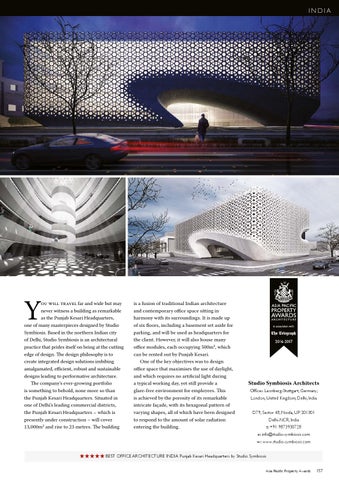 far and wide but may never witness a building as remarkable as the Punjab Kesari Headquarters, one of many masterpieces designed by Studio Symbiosis. Based in the northern Indian city of Delhi, Studio Symbiosis is an architectural practice that prides itself on being at the cutting edge of design. The design philosophy is to create integrated design solutions imbibing amalgamated, efficient, robust and sustainable designs leading to performative architecture. The company’s ever-growing portfolio is something to behold, none more so than the Punjab Kesari Headquarters. Situated in one of Delhi’s leading commercial districts, the Punjab Kesari Headquarters – which is presently under construction – will cover 13,000m² and rise to 23 metres. The building