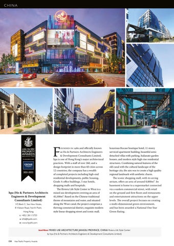 t: +852 2811 5733 e: info@hpahk.com w: www.hpahk.com Award Winner MIXED USE ARCHITECTURE JIANGSU PROVINCE, CHINA Riviera Life Style Center