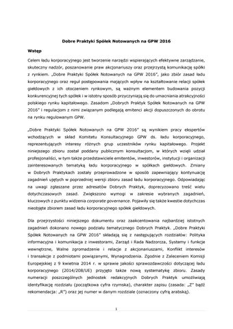Dobre praktyki sp贸艂ek notowanych na GPW