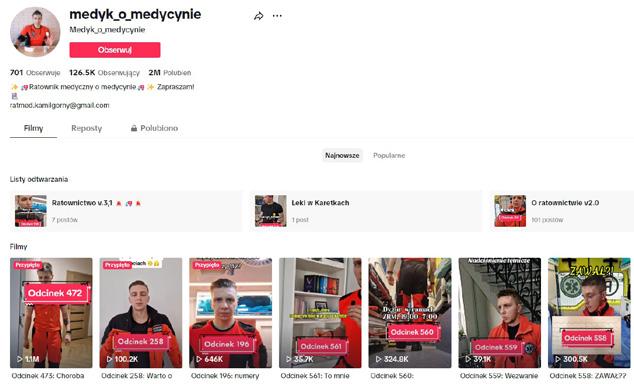 pomocy innym. Jego aktywność na TikToku ma również wymiar edukacyjny. Wykorzystuje popularność swojego profilu, aby nauczyć podstaw pierwszej pomocy, zachęcać do podjęcia szkoleń i zwiększyć świadomość znaczenia szybkiej reakcji w sytuacjach zagrożenia życia.