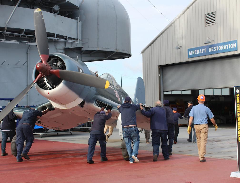 In October 2024, the Intrepid Museum accepted an icon of WWII aviation into its collection: an FG-1D Corsair fighter. The Corsair is the 2nd WWII aircraft in the Museum’s collection, joining the TBM-3E Avenger torpedo bomber. Introduced in 1942, the Voughtdesigned Corsair eventually made its way to the flight decks of aircraft carriers in 1943.