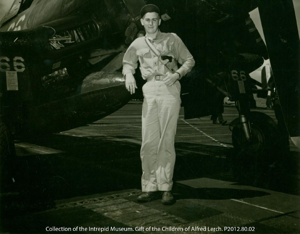 Born in Pennsylvania, Alfred Lerch enlisted in the Naval Reserve in 1942, shortly after the United Stated entered World War II. After becoming a naval aviator in 1944, Lerch came aboard Intrepid as part of Fighting Squadron 10 (VF-10), a unit flying Corsair aircraft, in early 1945.
