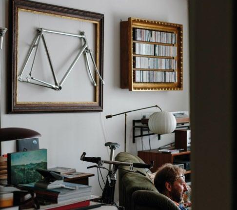 der Nähe des Elternhauses, später gewann das Suchen an Raffnesse: Oldtimerfohmärkte führten auch zum Erwerb historischer Kataloge („So konnte ich erstmals Fahrräder aus der Zeit der Monarchie identifzieren."), das Internet erschloss die Quellen weltweit: Ebay, natürlich, aber Michael Zappes lückenloses Talent zum Auftreiben von Fahrradteilen führte auch in der Kohlenstoffwelt zu allerlei hübschen Situationen. So kam es vor, dass er aus einem Haufen rostigen Klumperts (das Lager des italienischen Rennradsammlers war kurz davor ins Hochwasser geraten) zielsicher die älteste Version von Campagnolos Cambio Corsa-Schaltung zupfte, rare as hen's teeth , wie die Briten sagen würden. Am low-end-Bereich des Sammelns erschien er aus einem Waldstück an einem deutschen Autobahndreieck, wohin ihn ein menschliches Rühren geführt hatte, nach wenigen Minuten mit einem Rennlenker.