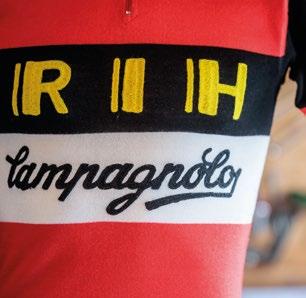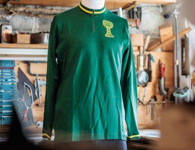 Im Kleinen auch beim Wiener Amateurverein RC Grüner Veltliner . Dessen Weinglas auf der Brust des noch recht klassisch gehaltenen LangarmTrikots ist zwar nach wie vor gestickt und nicht gefockt, zeugt aber trotzdem von großer – beinahe italienischer – Detailverliebtheit in stimmiger Ausprägung, denn: Gegründet von ehemaligen Profs, frönte man während der Ausfahrten gerne Heurigenbesuchen. Und das garantiert mit Radkäppi, vielleicht auch schon in Lycra-Hosen.