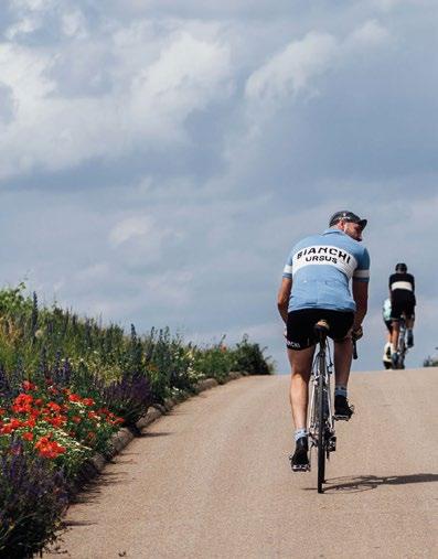 Peugeots legendärer Rallyestreifen etwa hatte 24 Saisonen ununterbrochen lang Zeit, sich ins Gedächtnis der Menschen zu brennen, davor war der Franzosen ursprüngliches Blau-Gelb vierzig Jahre lang auf der Dienstkleidung ihrer Werksfahrer zu fnden. Bianchis blau-weiße Präsenz im Peloton