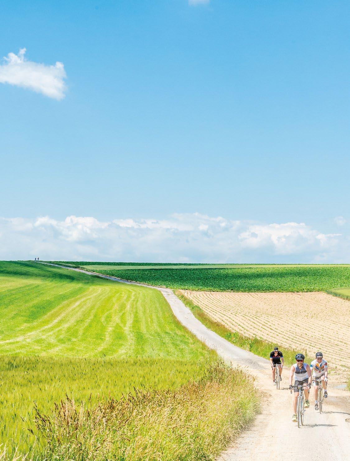 zu Tschechien das Rad der Zeit angehalten oder zurückgedreht, ohne dabei die Dringlichkeiten der Gegenwart zwischen Konsumrausch und Klimakrise nostalgisch zu leugnen. Ganz im Gegenteil. Ich bin zweifelsohne auf einer Radausfahrt. Und doch kann einen leicht der Gedanke beschleichen, dass es auch um ein Manifest für die Schönheit des Ewigen und für die Notwendigkeit des Nachhaltigen geht. Und es geht über schmale Straßen, durch kleine Dörfer ohne Wirtshaus, vorbei an mächtigen Bauernhöfen und kleinen Kapellen, an unheimlich vielen Kruzifxen und Andachtsmarterln, die wie eine Frontlinie irgendwann irgendwas gegen Ungläubige verteidigt haben müssen. Auf dem Weg an ihnen vorbei, glauben alle an die Herrlichkeit des Rades. Es geht durch Wälder und über Wiesen und Felder. In Landschaft Veritas.