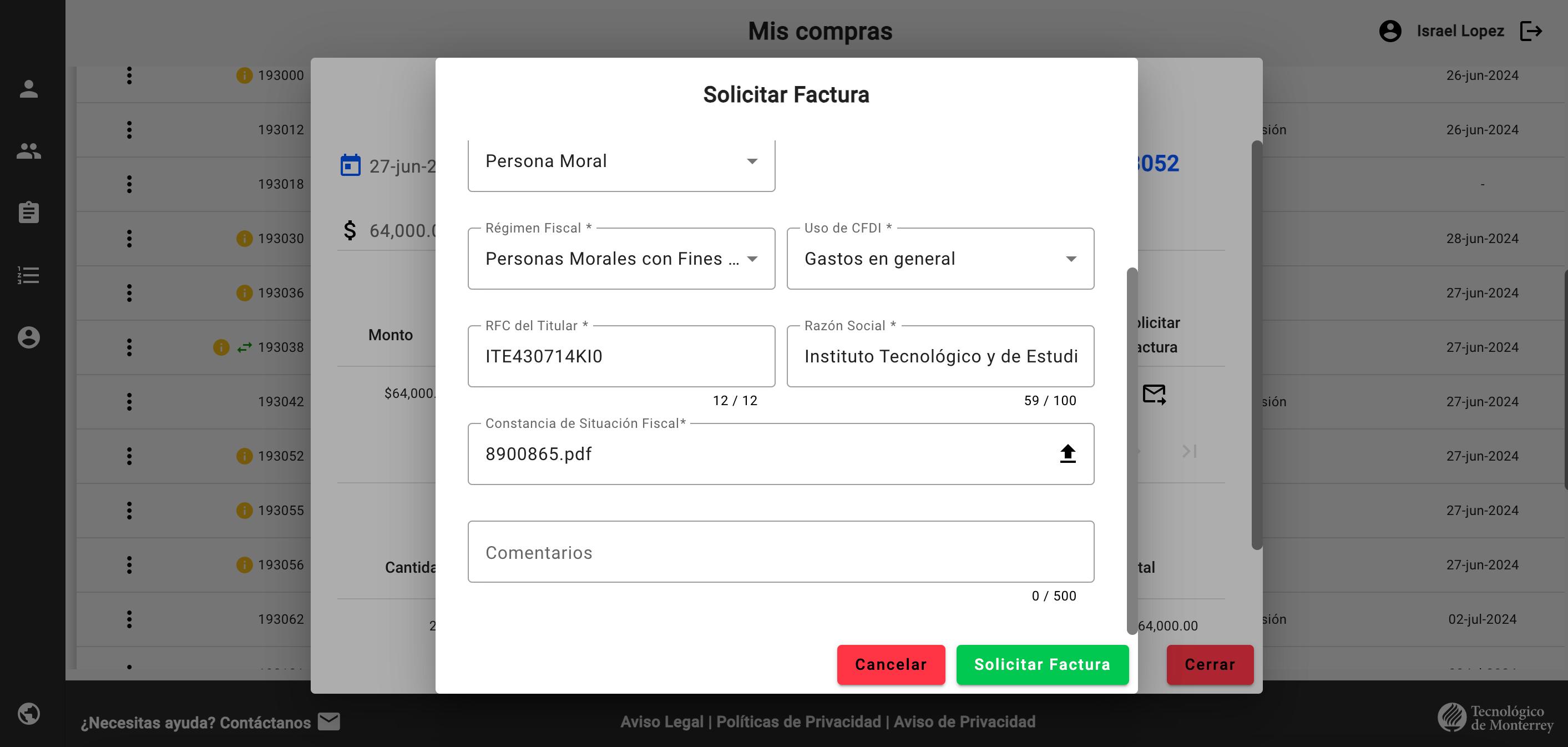 4. Llegará un correo confirmando la solicitud de factura. La factura se recibirá de 2 a 3 días hábiles