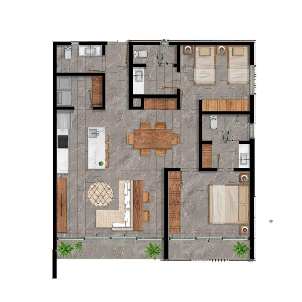 Con 164 departamentos y 12 penthouses, este paraíso selvático está preparado con una variedad de diseño y distribución. En nuestras residencias encontrarás el hogar perfecto que se adapte a cualquier estilo de vida.