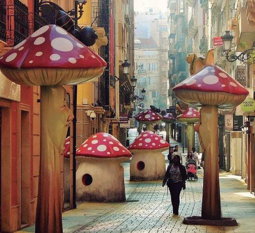 La Calle de los Hongos, oficialmente conocida como Calle San Francisco, se encuentra en el corazón de Alicante, España, y conecta el Portal de Elche con la Plaza de Calvo Sotelo. Es muy famosa por su decoración y tema, el cual evoca a los cuentos de hadas.