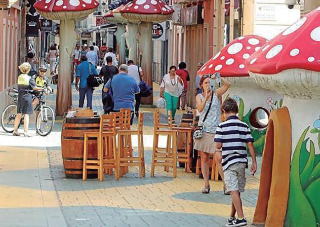 La alcaldesa Castedo implementó una iniciativa audaz y creativa para transformar la calle. Decidió tematizar la Calle San Francisco con grandes figuras de hongos, que pronto se convirtieron en el símbolo distintivo de la zona. El suelo se pintó de verde y amarillo, y se dibujaron rayuelas, creando un entorno colorido y lúdico.