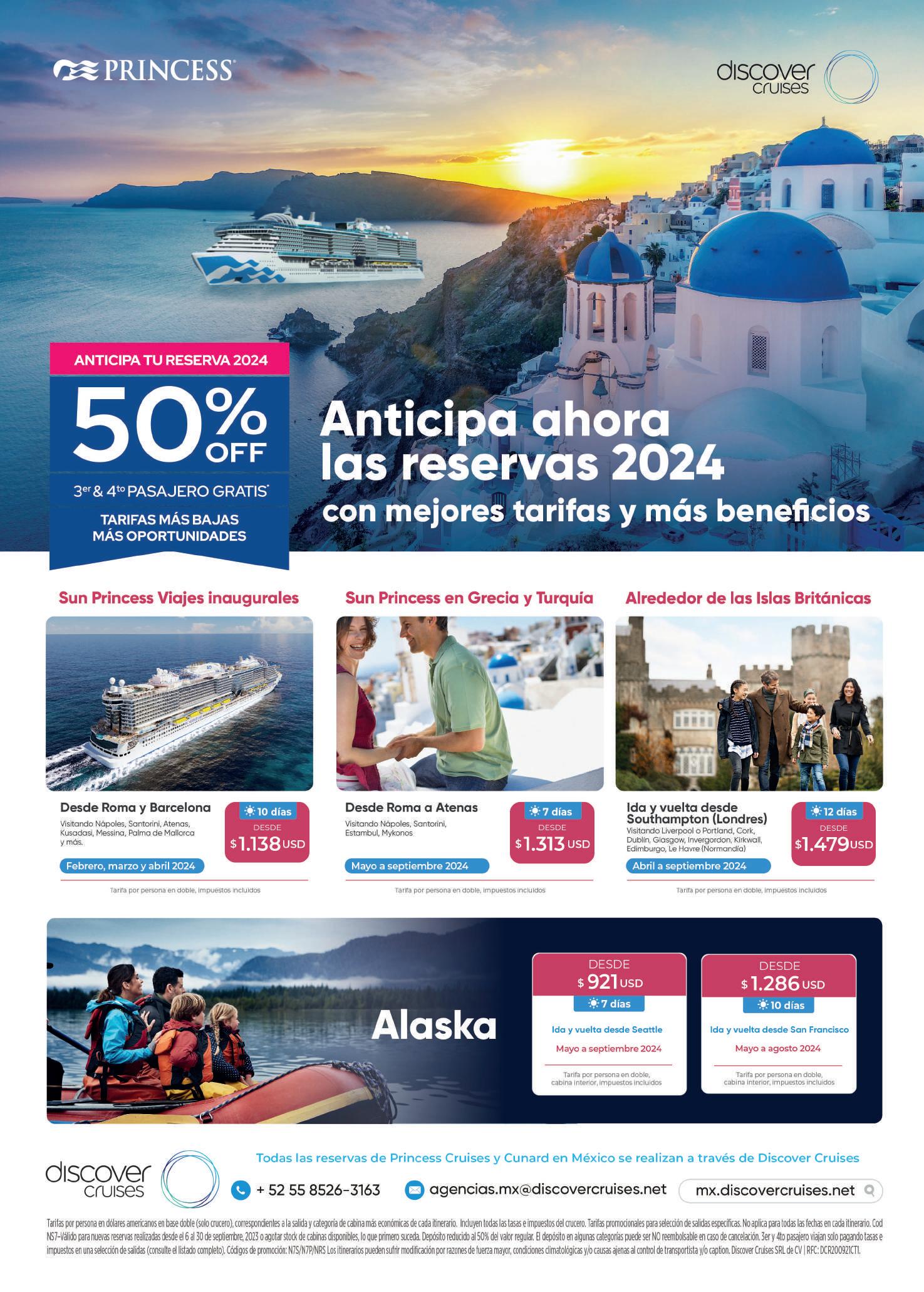 5. Los expertos señalan que siempre hay que planear con antelación para obtener buenas tarifas. Sin embargo, las ofertas que generan reservas de última hora son frecuentes. No son exclusivas de las principales navieras, también es posible encontrar dichos incentivos en el área de lujo, en viajes próximos a salir, de acuerdo con Cruise Critic.