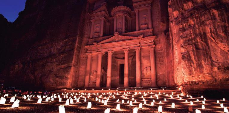Petra: La antigua ciudad nabatea de Petra, conocida como la “Ciudad Rosa” por el color de sus piedras, es una de las Nuevas Siete Maravillas del Mundo. Su majestuoso Tesoro es solo una de las muchas estructuras talladas directamente en la roca que puedes explorar.