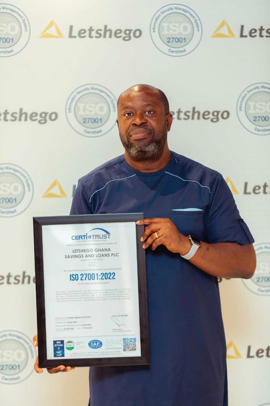 Letshego Ghana Savings and Loans remains committed to its mantra of 'Improving Lives' by o ering tailored nancial solutions underpinned by world-class security and customer service excellence. This certication underscores the institution's continuous e orts to provide safe, reliable, and secure nancial services, ensuring that customers' information is protected at all times.