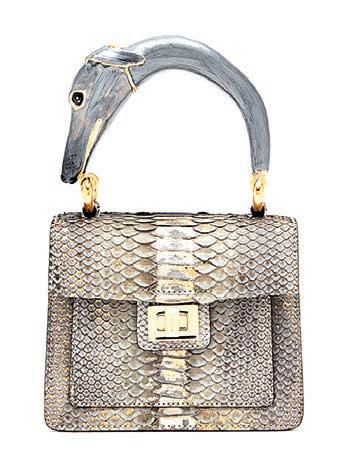 Mini top-handle bag in python leather, with sculpted metallic detail. biagini1968.com VALENTINO