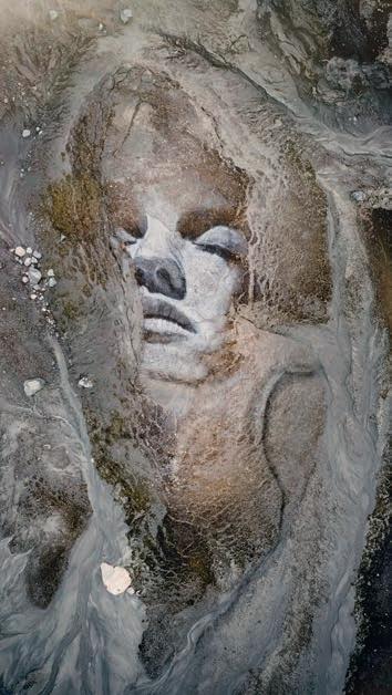 Each work is inseparable from its environment. Created on site, the murals respond to the texture of rock, the movement of water, the silence of open landscapes. They are almost invisible from the ground, revealing themselves fully only from above. Aerial perspective is essential, not to glorify scale, but to allow the artwork to exist at all.