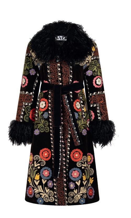 Velvet embroidered coat with floral patterns and soft fur trims. theworldofzazi.com