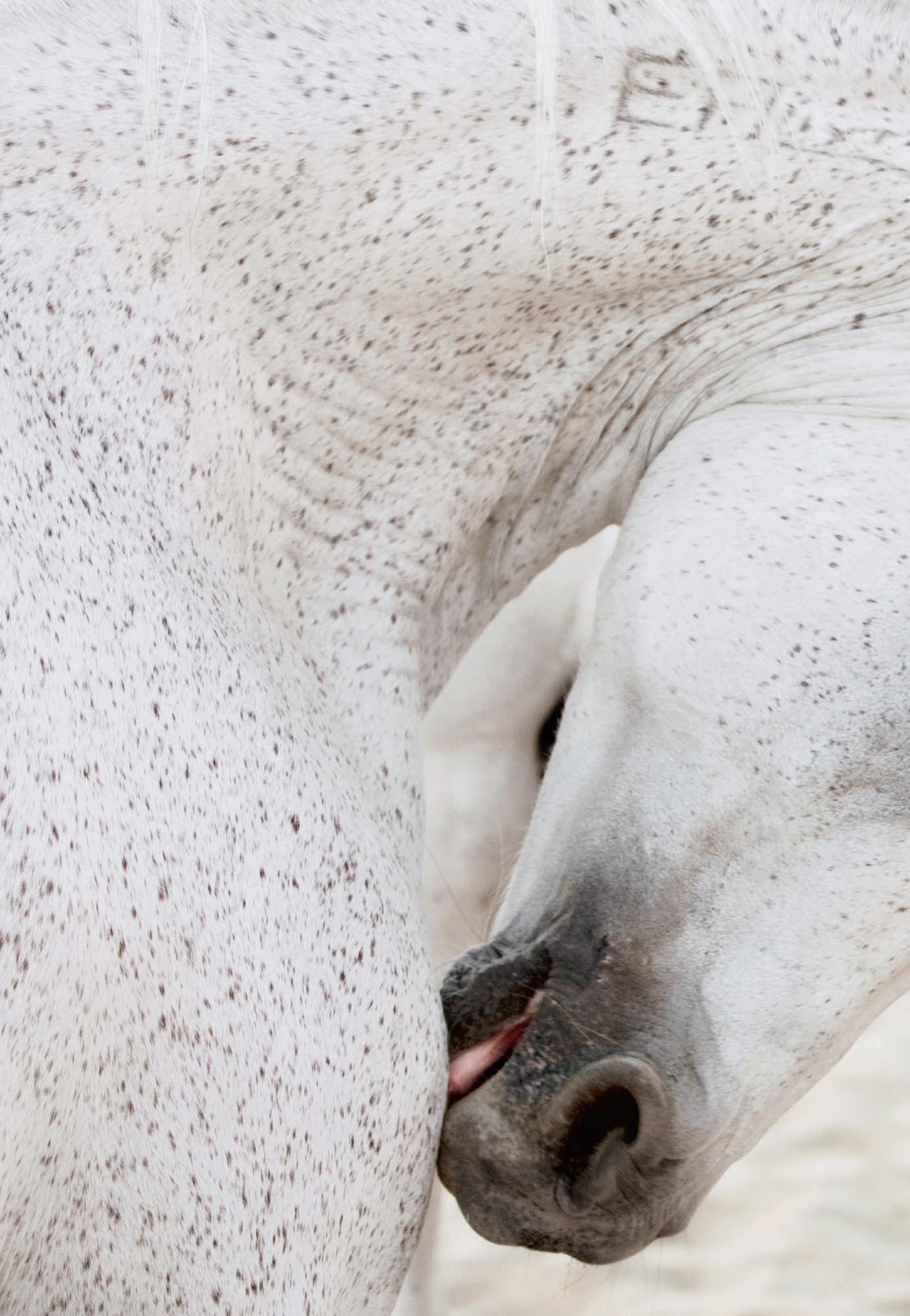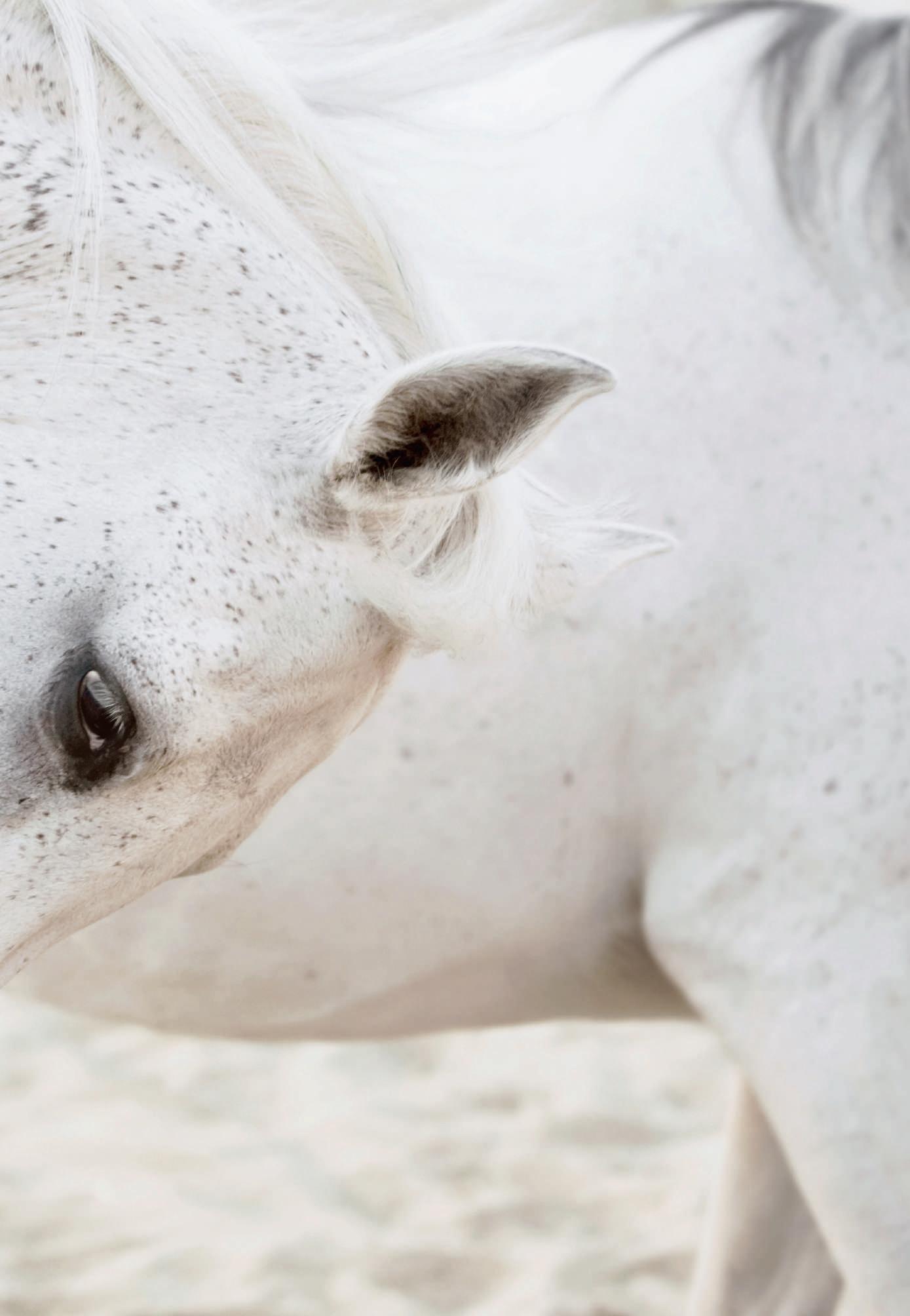 What drew me to this work was something I can only describe as inevitability. Here was a photographer who had spent a lifetime understanding horses from the inside — and who had turned that understanding into something extraordinary: a beauty shoot, in every sense of the word. The close-up of a nostril, the language of an ear tilted in curiosity or calm, a mane caught mid-movement like silk in slow wind, a gaze so proud it borders on sovereign.