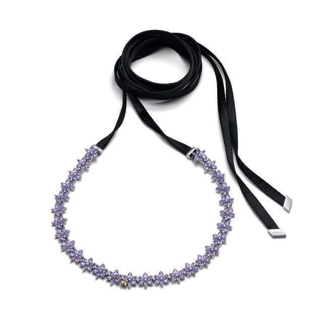 Herbarium choker with lilac crystals and black ribbon. Bridgerton allure, modern twist. pandora.com
