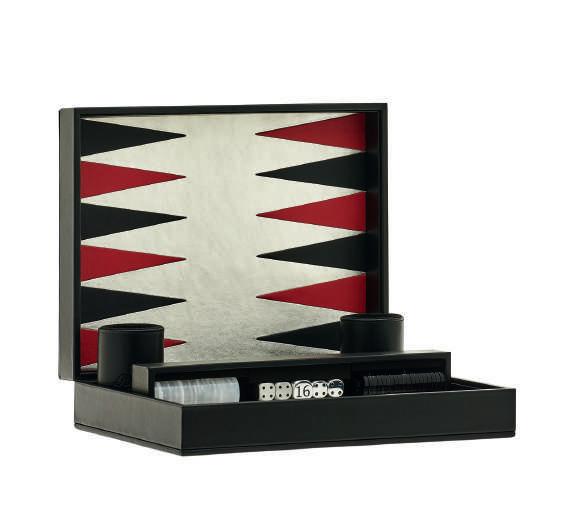 Leather backgammon set. Dice, counters, cups. The art of play. pineider.com