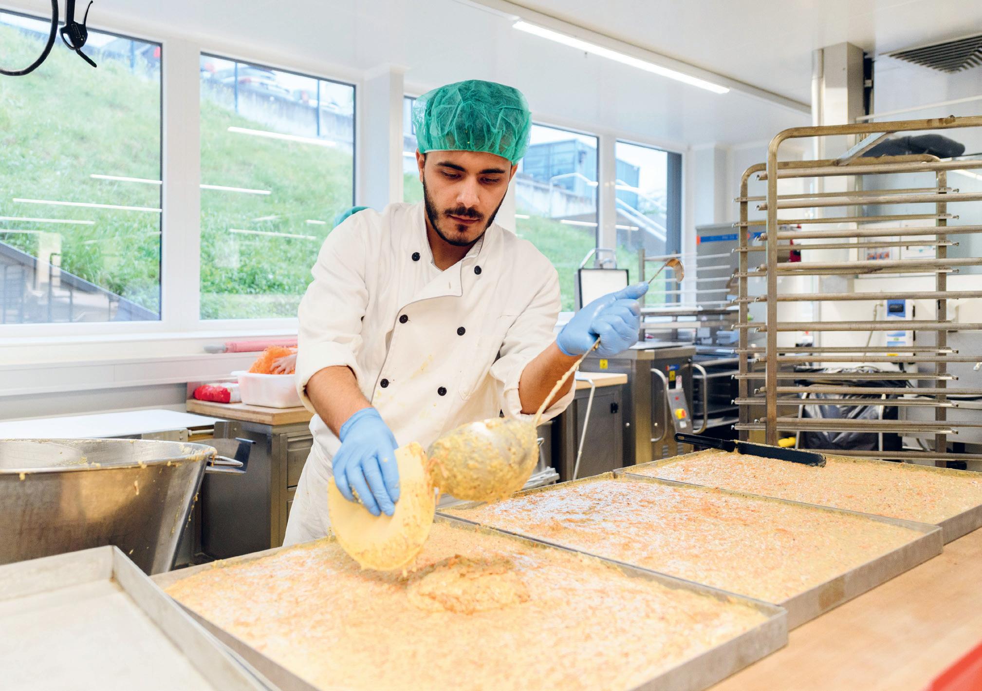 les produits de boucherie et la pâtisserie, ainsi que les entremets proposés lors des événements et apéritifs. La centrale emploie 60 personnes dans son bâtiment de 5600 m² inauguré en 2019. Les plats chauds sont préparés dans les cuisines du CHUV, situées au sous-sol de l’hôpital. En tout, plus de 7000 repas sont confectionnés par jour. Reportage.